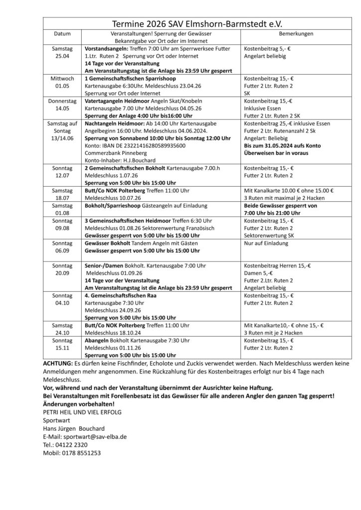Termine Am 28.03.26 und am 18.04.26 finden am Pinnau Sperrwerksee Sonderarbeitsdienste statt. Treffen ist um 8:00 Uhr auf dem Parkplatz Sperrwerksee.